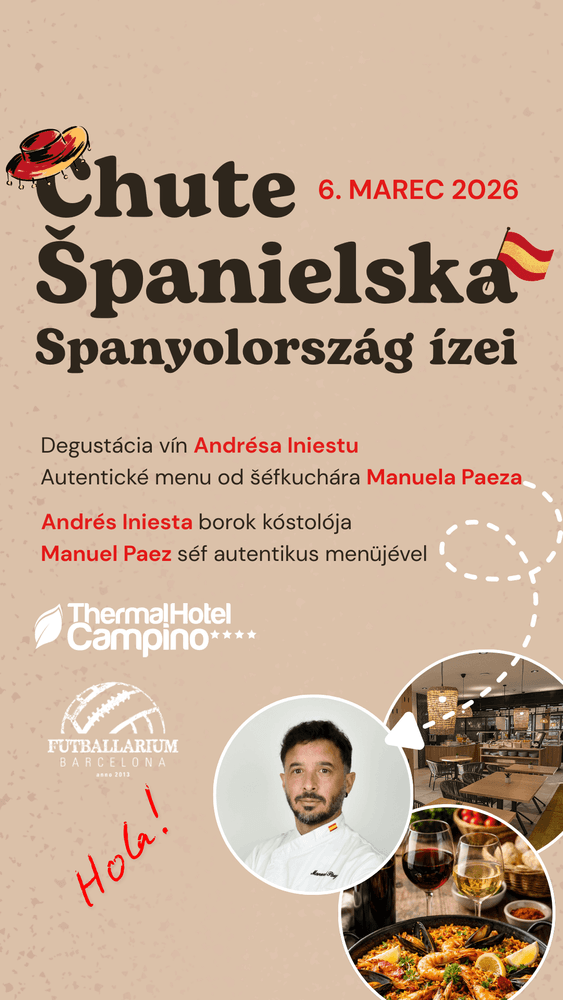 Pozývame vás na výnimočný gastronomický večer, ktorý vás prenesie priamo do srdca Španielska. Doprajte si autentický zážitok spájajúci špičkovú kuchyňu, výberové vína, hudbu a vášeň pre futbal.